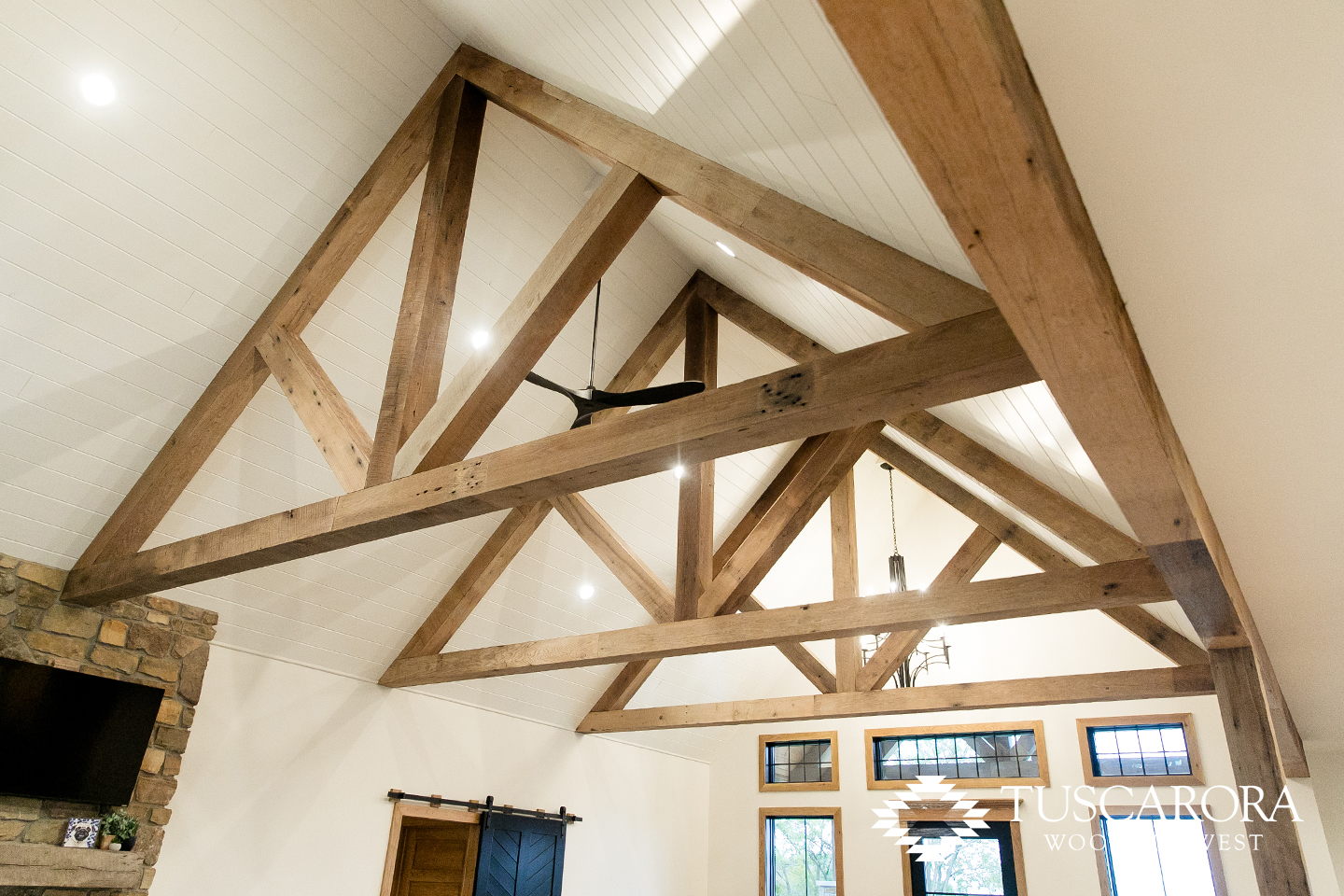 Tuscarora provides a wide range of reclaimed hardwood beams – from large, hand-hewn and circle-sawn timbers for ceiling and timber frame applications to fireplace mantels and box beam accent pieces. Nothing adds charm and an old world feel like adding these beautiful timbers that were sawn or hewn to size in the late 1800s to early 1900s.